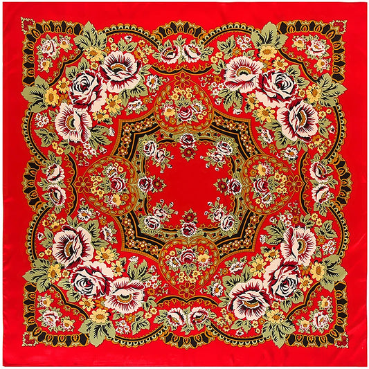 130cm 2021 New Luxury Brand Bohemia Print Winter Silk Scarf Women Twill Floral Turban Headband Large Hijab Square Scarf Shawl