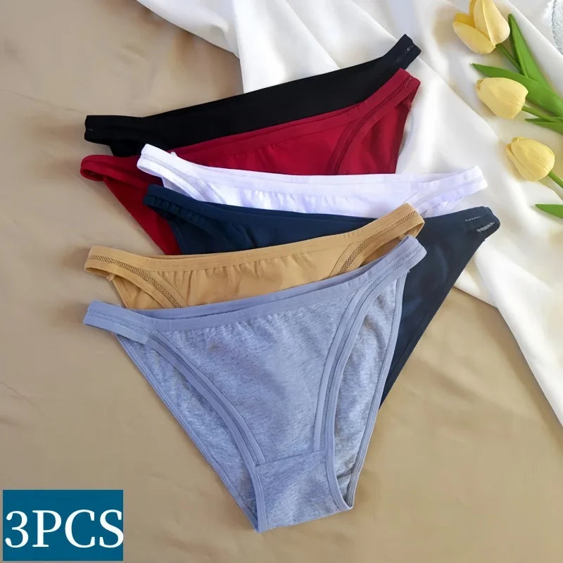 3Pcs/set Women Cotton Panties Low Rise Briefs Female Underpants Breathable Sexy Lingerie Seamless Underwear Mesh Pantys M-XL