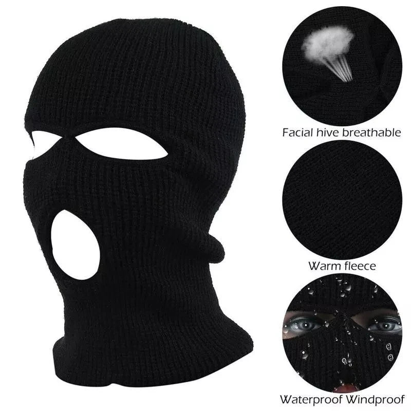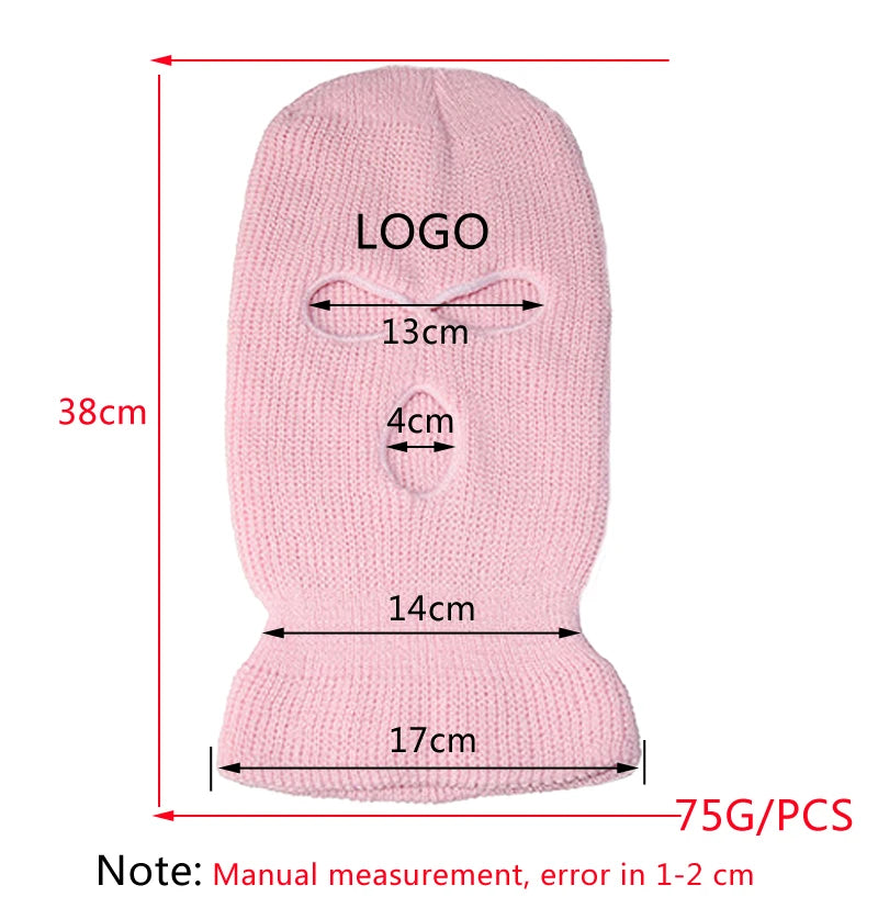 Motorcycle Windproof Full Face Knit Hats Custom SkiMask Men Warm Wool Balaclava embroidery Winter hats Knitted 3 Holes Ski Mask