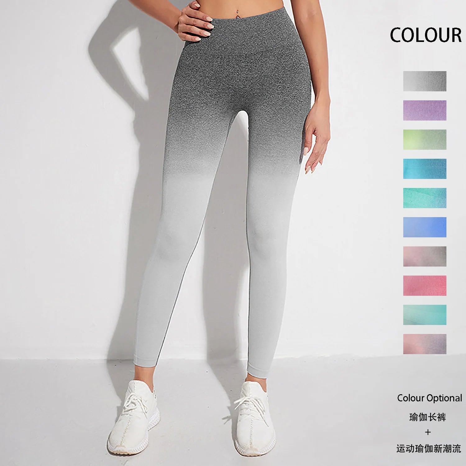 New Gradient Colour Yoga Pants Yoga High Waist Push Up Tight Legging Pants Outdoor Clothing Fitness Pants Mujer