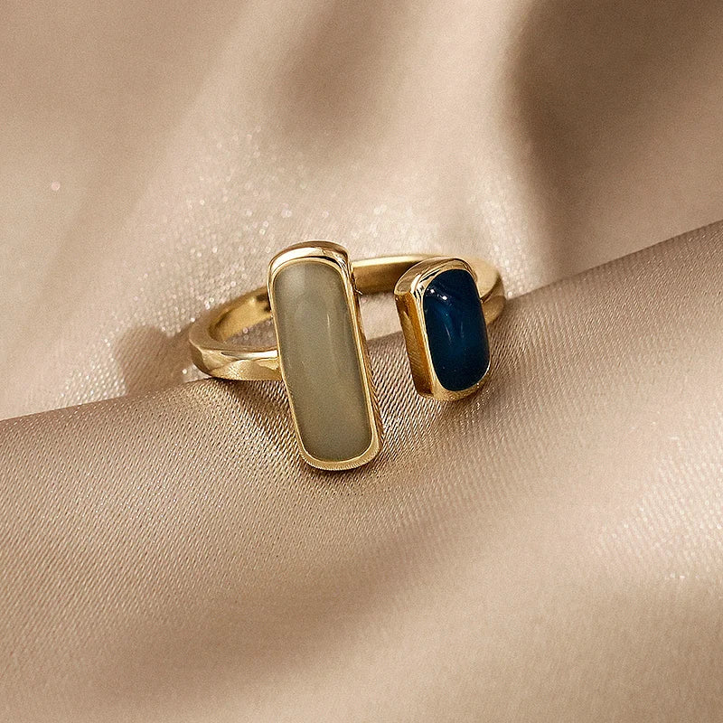New Square Blue Oil Dripping Rings Light Luxury French Retro Simple Opening Ring 2023 Fashion Temperament Women's Jewelry