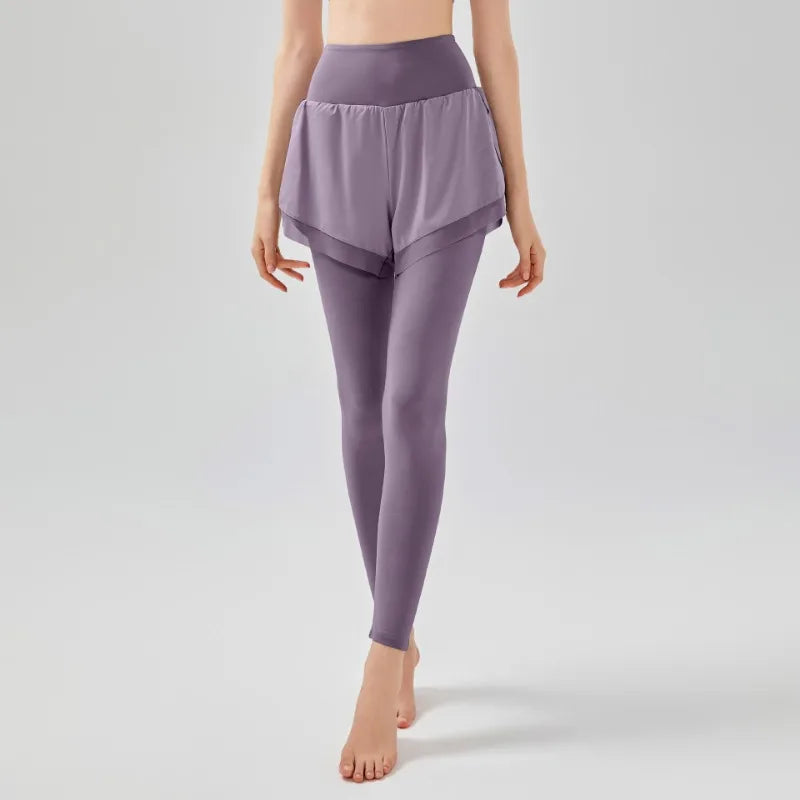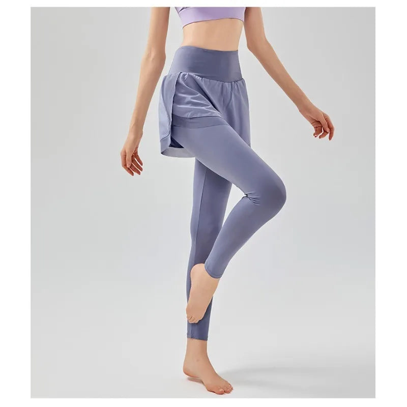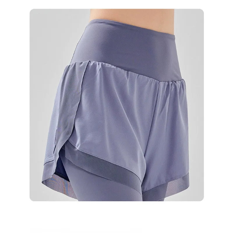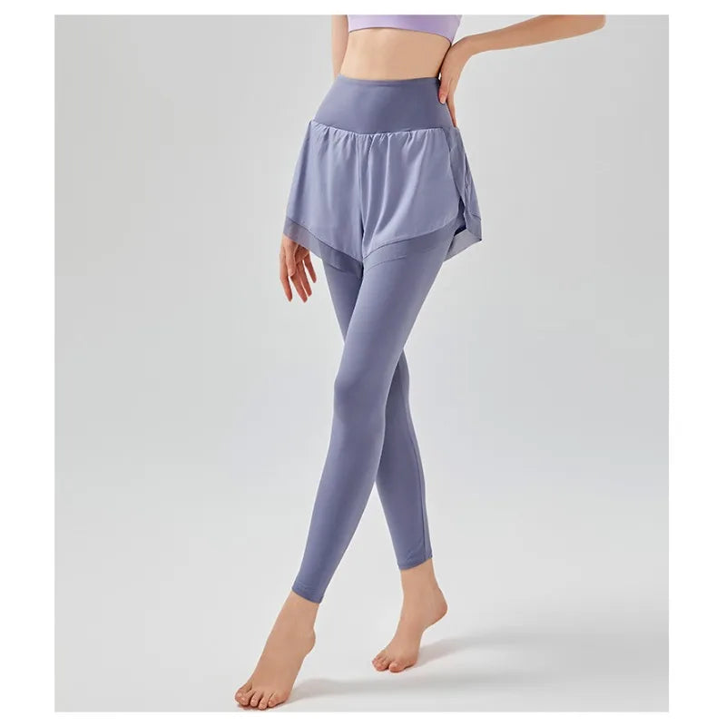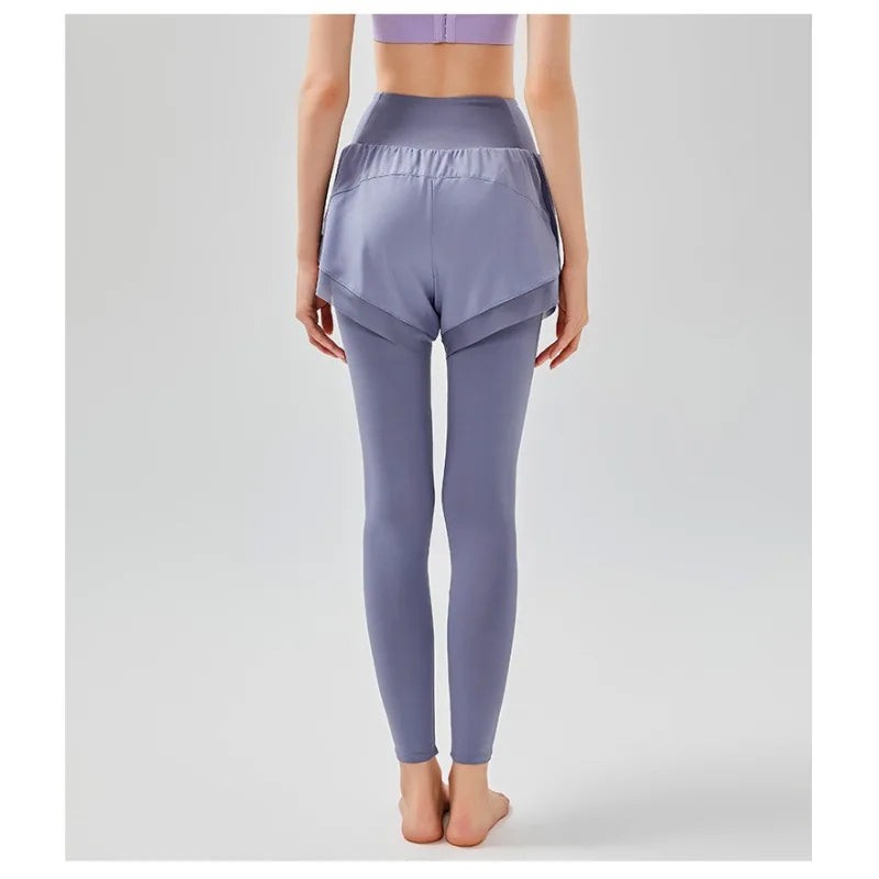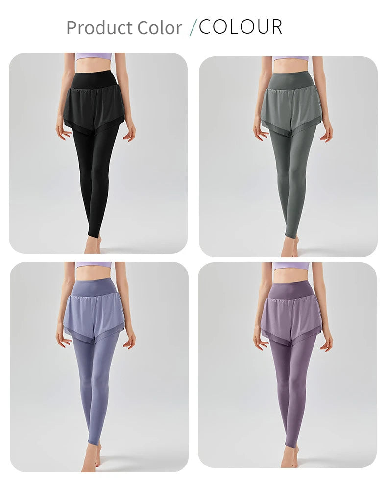 Women Fake Two Pieces Leggings Seamless Leggings with Pocket High Waist Elastic Pants Outdoor Fitness Butt Lift Yoga Tights