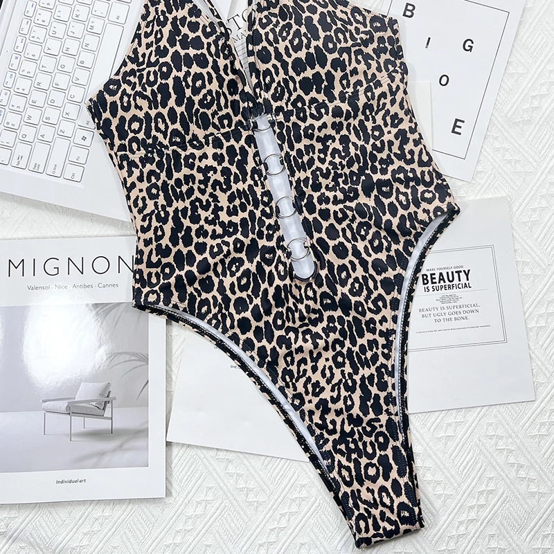 Women Hollow Out Monokini 2024 Leopard Print Swimsuit Overall Swimwear Sexy One Pieces Bikini Micro Swimming Fitted Bathing Suit