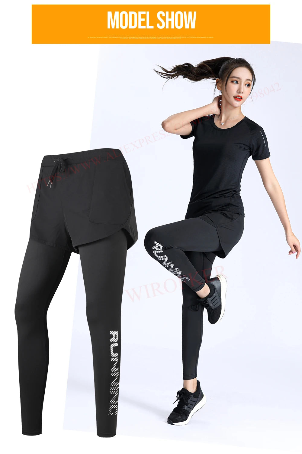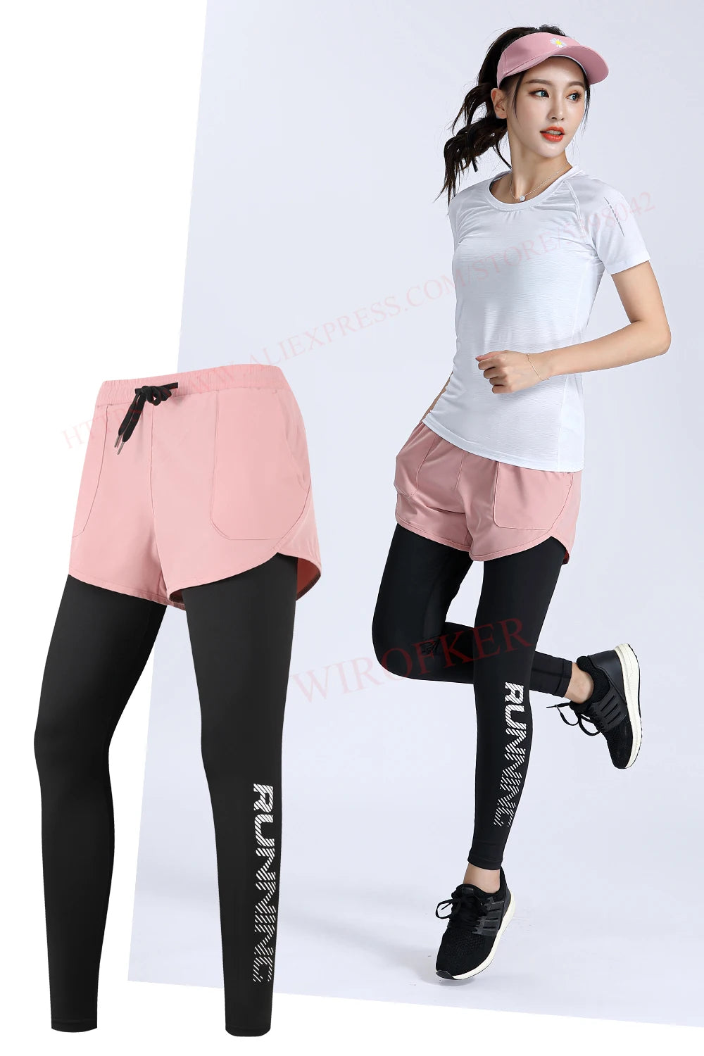 Women Running Trousers 2 In 1 Yoga Sports Fitness Leggings Quick Dry Jogger Training Sportpants High Waist Female Gym Pants