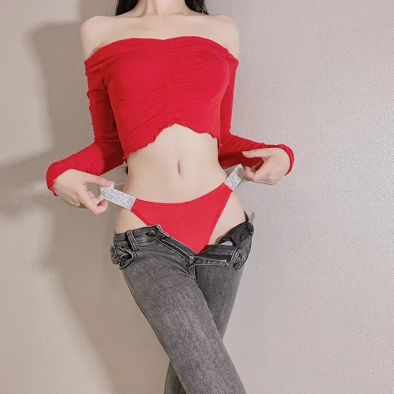 Women Sexy Thongs Rhinestones Letter Underwear Diamonds G-string Low Waist Female Briefs Shorts T-back Fitness Triangle Panties